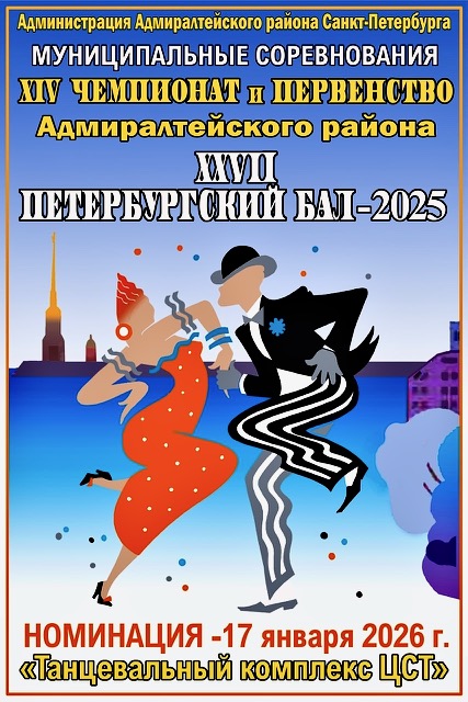 Рейтинг после 7 этапа участников XIV-Чемпионата, Первенств и Кубка Адмиралтейского района -2025г. /конкурс-фестиваль, соревнования СММ и СВД, Хип-Хоп /МУНИЦИПАЛЬНЫЕ СОРЕВНОВАНИЯ "XIV - Чемпионат и Первенство Адмиралтейского района - 2025"и "XXVII - Петербургский бал- 2025"- НОМИНАЦИЯ, 17 января, суббота, 2025г.new! АНОНС !!!new! Календарный план соревнований на 2026 годРезультаты присвоение разрядов на ЧЕМПИОНАТЕ и ПЕРВЕНСТВАХ МУНИЦИПАЛЬНОГО ОБРАЗОВАНИЯ Нормативы /ЕВСК/ для присвоения спортивных разрядов Чемпионата и Первенств муниципального образованияКвалификационные требования к спортивным судьям /КТСС/по виду спорта «танцевальный спорт» от 05.04.2024Все результаты соревнований